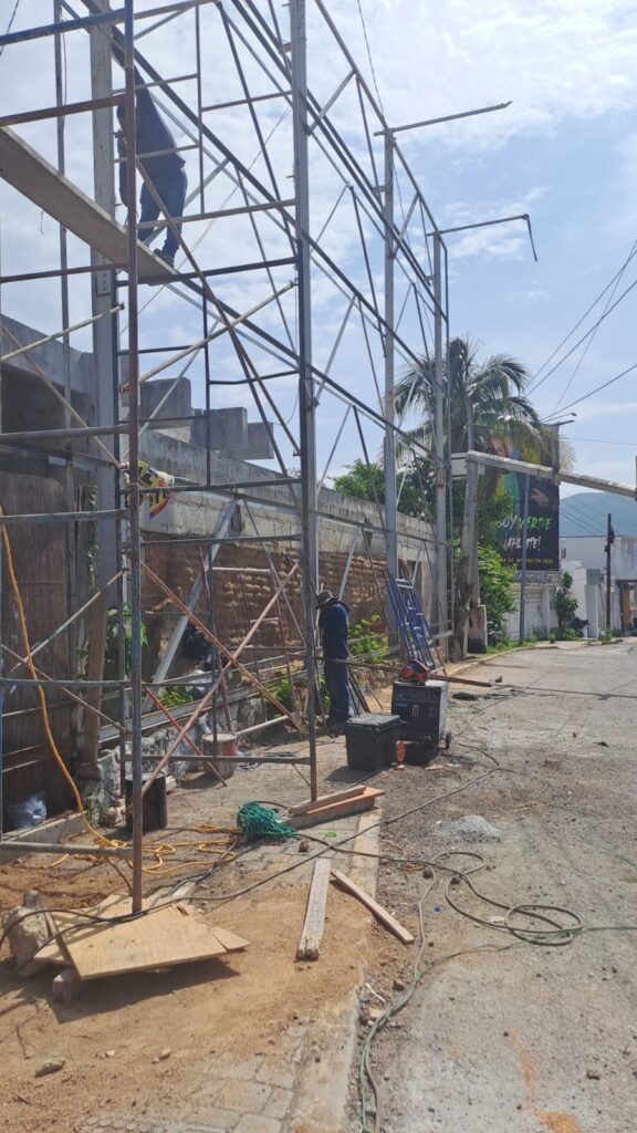 En la Av. Escénica están trabajando en la instalación de una estructura metálica invadiendo la vía publica sin que la SDUOP haga acto de presencia y proceda a la clausura de los trabajos, le han mandado oficios denunciando esta anomalía y a la fecha ni los inspectores actúan.