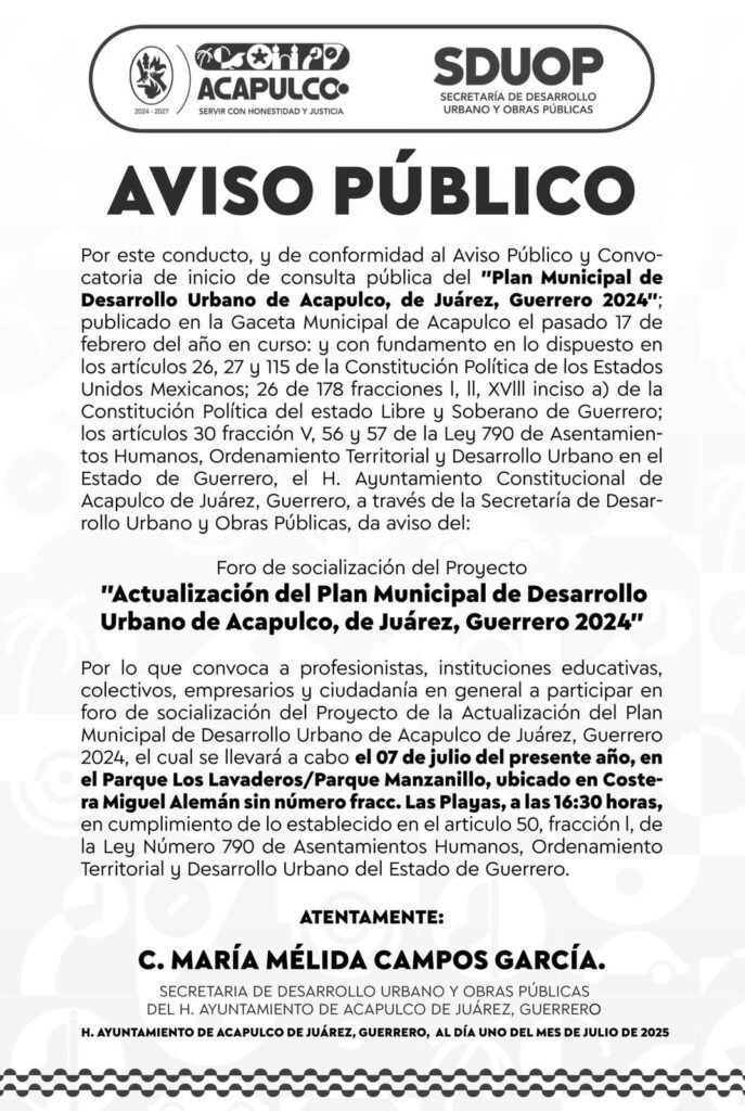 La Sra. María Melida Campos incumplió el procedimiento para actualizar el Plan Municipal de Desarrollo Urbano; en Acapulco también con el proceso legal urbano en la realización de las consultas públicas de los Planes Parciales de los barrios históricos, así como del Costera, Pie de la Cuesta y Bonfil.